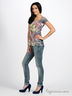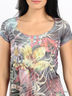 Оригинальная футболка подойдет как для прогулок, так и для вечернего отдыха в кругу друзей. Округлый вырез горловины дополнен трикотажной лентой. Футболка декорирована оригинальным набивным рисунком и стразами.