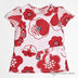 Футболка с ярким принтом в виде красных цветов, украшена пояском в цвет. Отлично подойдёт юным модницам.