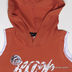Стильная безрукавка с капюшоном и принтом. Рукава выглядят обрезанными и неподшитыми.