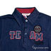 Синяя хлопковая футболка с вырезом поло - отличный выбор для активных мальчиков. Спереди апликация ввиде слова "TEAM". Декоративная окантовка рукавов и низа футболки выполнена из тонкого трикотажа красного цвета.