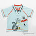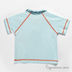 Модель с эффектом двойки и отлажным воротничком застегивается на пуговицы. Контрастная прострочка. Декоративные аппликации, нашивки и вышивка на полочке.