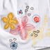 Расклешенная модель с рукавом-крылышком застегивается на три пуговицы на спинке. Декоративнык встречные сборки на полочке, аппликации , нашивки и вышивка на подоле.