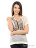 Детали: круглый вырез; короткий цельнокроеный рукав; декорирована оригинальным принтом; нижняя резинка трикотажная