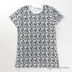 Модель прямого кроя пестрой расцветки.