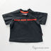 Футболка прямого кроя с короткими рукавами. Круглая горловина на трикотажной резинке. На левом плече две заклепки. Полочка украшена бархатистой надписью.