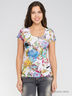 Футболка с короткими рукавами и округлым вырезом горловины. Модель облегающего фигуру кроя дополнена принтом спереди. Отличный вариант на каждый день.