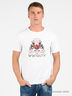 Детали: круглый вырез горловины с притачной бейкой, короткий рукав, яркий принт на полочке.