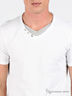 Детали: V-образный вырез горловины с пришитой подкладкой имитирующей двойку, пуговицы в качестве декора, короткие рукава.