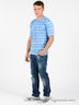 Детали: округлый вырез горловины дополнен трикотажной бейкой, короткий прямой рукав, низ изделия по бокам дополнен разрезами.