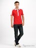 Замечательная мужская футболка с воротником-поло, короткими рукавами и застежкой на пуговицы. Декорирована металлической пряжкой на груди и контрастными вставками белого цвета на плечах и спине.
