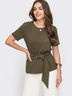 Must have гардероба - однотонная футболка из приятной вискозы. Дополняет образ пояс с пряжкой в тон основной ткани.
