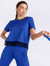 Футболка свободного кроя с втачным коротким рукавом, комбинированная стрейч-сеткой в нижней части полочки и круглым вырезом отлично подойдет для занятий спортом. А качественный материал с хорошей степенью растяжимости не будет сковывать движений.