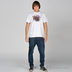 Хлопковая футболка белого цвета с принтом прекрасно подойдёт для тёплого времени года.