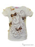 Футболка с коротким рукавом и округлым вырезом горловины. Рукав и бока стянуты декоративной резиночкой и украшены бантиками. Футболка украшена стразами и аппликацией. Отличный вариант на каждый день.
