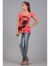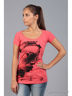 Детали: футболка с коротким рукавом, глубокий круглый вырез горловины, с лицевой стороны изделия броский принт, украшенный маленькими стразами.