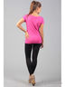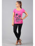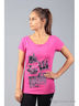 Детали: футболка с коротким рукавом на небольшой трикотажной манжете, вырез горловины лодочка, эксклюзивный принт с лицевой стороны изделия, украшенный по уголкам стразами.
