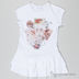Стильная футболка для девочки с модным принтом и стильными аксессуарами. Подол выполнен с летящим эффектом, круглый вырез горловины, рукав крылышко.