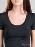 Высокоэластичная ткань с водоотталкивающими свойствами. Короткий рукав. Округлый вырез горловины. На груди аппликация из мелких клепок в виде логотипа марки.
