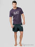 Тонкая хлопковая ткань с содержанием эластана. Округлый вырез горловины. Короткий рукав. Боковые вставки с окантовкой кромки светлой полоской ткани. На полочке декоративный принт в виде логотипа марки.