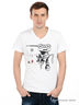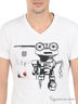 Детали: V-образный вырез горловины посажен на резинку, рукав однокроеный короткий, на полочке оригинальный яркий принт.