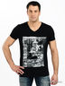 Детали: V-образный вырез. Рукав короткий. Лицевая сторона украшена оригинальным принтом.