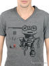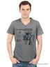 Детали: V-образный вырез горловины посажен на резинку, рукав однокроеный короткий, на полочке оригинальный яркий принт.