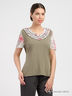 Футболка с короткими рукавами и округлым вырезом горловины. Изделие выполнено из контрастных по цвету тканей. Отличный вариант на каждый день.
