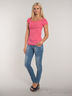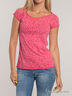 Отличная футболка выполнена из натурального хлопка. Модель с округлым вырезом горловины и короткими рукавами. Приталенный крой. Изделие декорировано рисунком в горох.