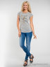 Восхитительная футболка из натурального полотна - то, что нужно для ощущения комфорта каждый день. Изделие приятной расцветки, декорировано принтом. Вырез горловины округлый, короткие рукава.