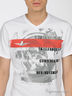 Футболка мужская из хлопкового трикотажа. Классический крой. Короткий рукав. Вырез горловины оформлен трикотажной резинкой. Изделие декорировано рисунком-принтом.