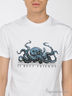 Футболка мужская из хлопкового трикотажа. Классический крой. Короткий рукав. Округлый вырез горловины оформлен трикотажной резинкой. Изделие декорировано рисунком-принтом.