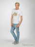 Футболка мужская из хлопкового трикотажа. Классический крой. Короткий рукав. Округлый вырез горловины оформлен трикотажной резинкой. Изделие декорировано рисунком-принтом.