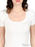 Детали: округлый вырез горловины, короткий рукав с декоративной сборкой, полочка украшена стразами