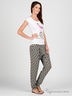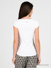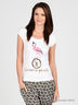 Детали: округлый вырез горловины дополнен трикотажной лентой, короткий рукав, полочка декорирована набивным рисунком
