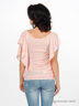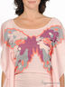 Футболка из вискозного трикотажа. Рукав - "бабочка". Свободный силуэт. Декоративная сборка по боковому шву. Рисунок-аппликация на полочке изделия.