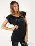 Футболка-туника свободного кроя с круглым вырезом, декорирована надписью - логотипом бренда из страз.