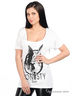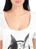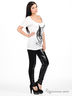 Стильная футболка, украшенная оригинальным принтом и стразами. Выполнена из тонкого эластичного трикотажа с глубоким вырезом горловины, короткие рукава.