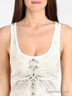 Оригинальная майка с глубоким круглым вырезом, без рукавов. Майка декорирована фото-принтом, пайетками и стразами в виде стрекозы.