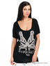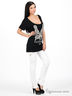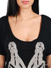 Черная футболка, украшенная оригинальным принтом и стразами. Выполнена из тонкого эластичного трикотажа.