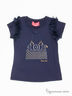 Очаровательная футболка из натурального материала разнообразит детский гардероб. Модель с округлым вырезом горловины и короткими рукавами с "рюшами" оформлена эффектным контрастным принтом. Идеально подойдет для повседневного использования.