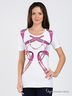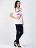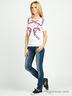 Детали: V-образный вырез горловины, короткий рукав, полочка украшена аппликацией и стразами