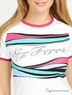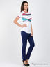 Детали: округлый вырез горловины, короткий рукав, полочка украшена аппликациями и стразами