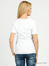 Детали: V-образный вырез горловины, короткий рукав, полочка украшена аппликацией и стразами