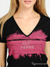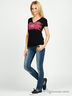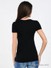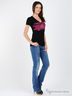 Детали: V-образный вырез горловины, короткий рукав, полочка украшена аппликацией и стразами