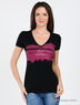 Детали: V-образный вырез горловины, короткий рукав, полочка украшена аппликацией и стразами
