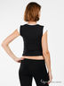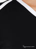 Повседневная футболка приталенного силуэта. Выполнена из эластичной ткани. Округлый вырез горловины. Короткие рукава-крылышки. Модель украшена контрастными вставками.