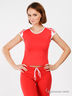Повседневная футболка приталенного силуэта. Выполнена из эластичной ткани. Округлый вырез горловины. Короткие рукава-крылышки. Модель украшена контрастными вставками.