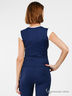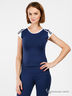 Повседневная футболка приталенного силуэта. Выполнена из эластичной ткани. Округлый вырез горловины. Короткие рукава-крылышки. Модель украшена контрастными вставками.