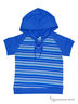 Легкая летняя футболка из ткани в полоску с капюшоном. Горловина футболки украшена блочками и шнурком. Практичная расцветка устойчива к стирке.