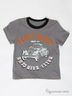 Удобная легкая футболка с контрастной отделкой, украшена принтом "ретро автомобиль". Отличный вариант для прогулок, игр.